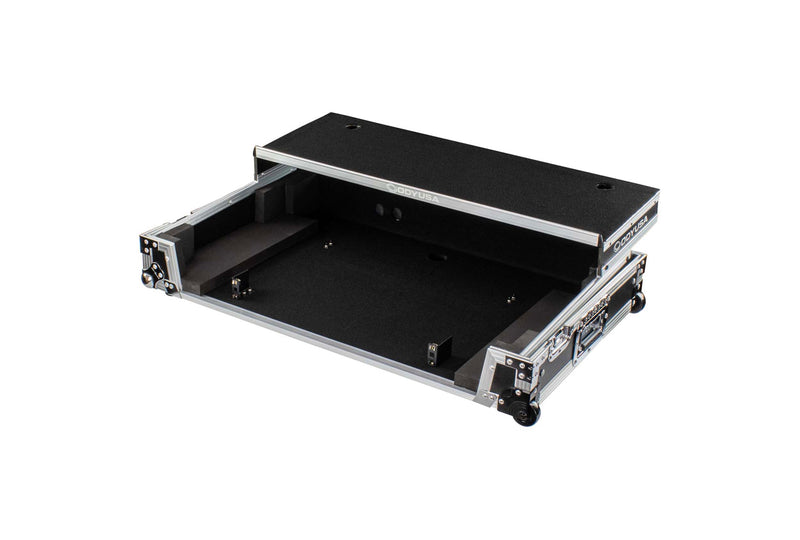 The Odyssey FZGSRANE4W1 1U Flight Case with Glide Style Laptop Platform and Wheels for Rane Four Controller is designed to protect and transport the Pioneer DJM-A9 mixer. It features a bottom 1U rack space, a cable port hole, corner wheels, a glide platform port hole, a laptop platform (glide style), lid foam, and rubber feet. The bottom 1U rack space is perfect for storing cables, adapters, or other small accessories. The cable port hole allows you to easily run cables through the case without having to open it. The corner wheels make it easy to transport the case, even when it is fully loaded.