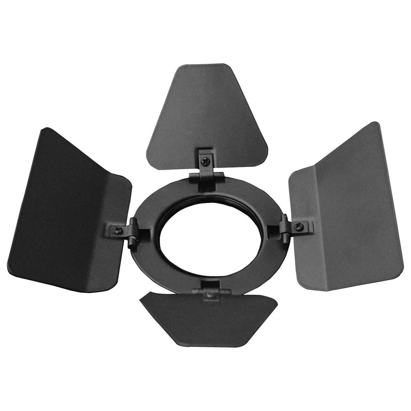 The LSPAR16BDB black barn door apparatus attaches to Odyssey Par 16 light fixture. Control superfluous spill light from the stage or other architectural projection elements with the adjustable folding frame appendages. Other barn door par sizes and colors are available.