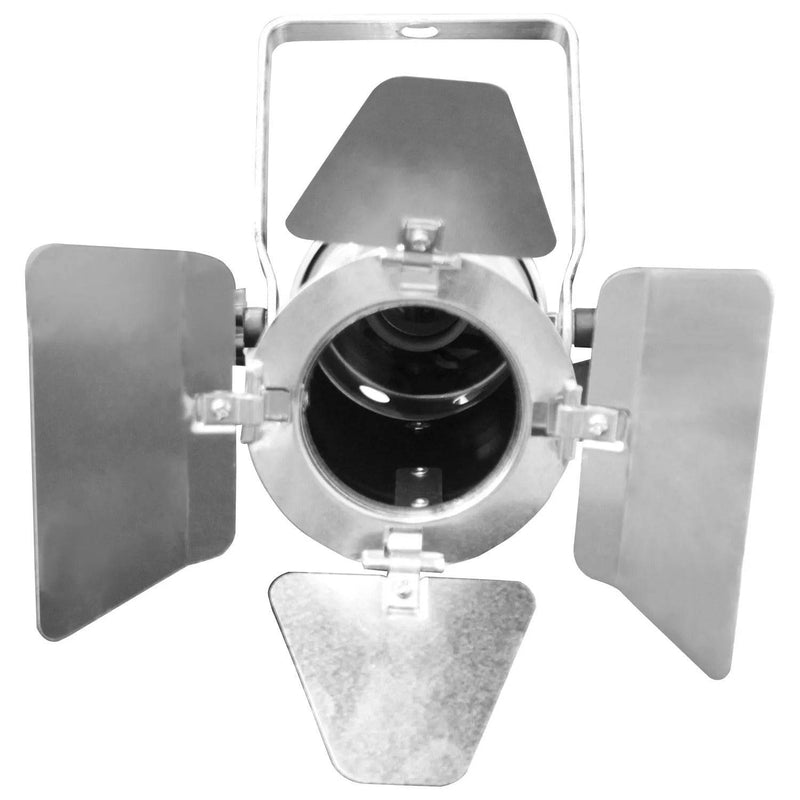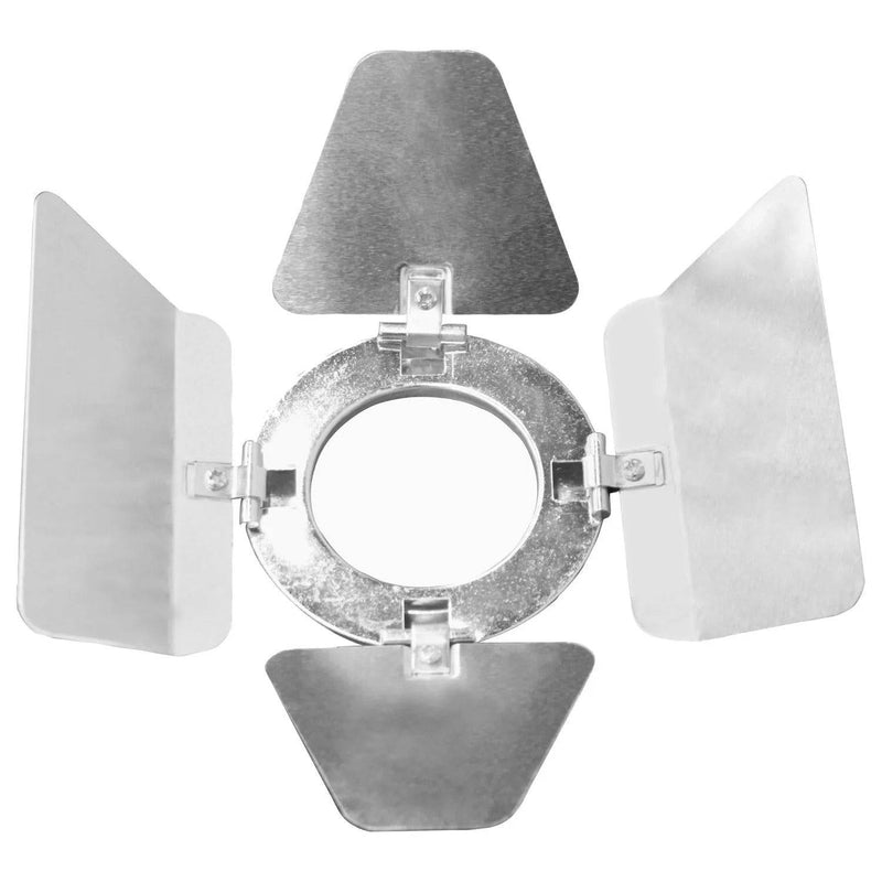 The LSPAR20BDP high polish aluminum barn door apparatus attaches to Odyssey Par 20 light fixture. Control superfluous spill light from the stage or other architectural projection elements with the adjustable folding frame appendages. Other barn door par sizes and colors are available.