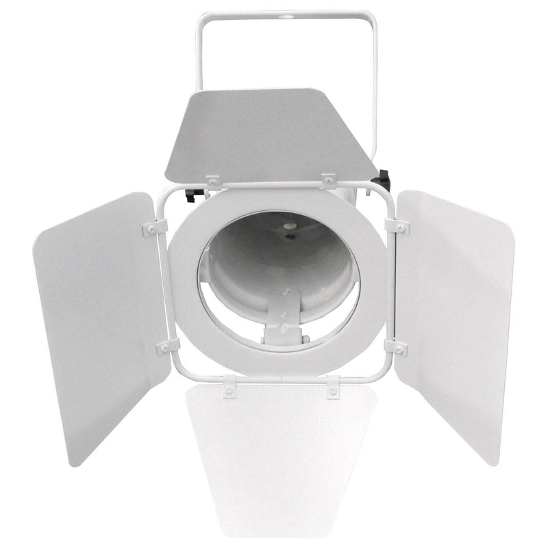The LSPAR30BDW white barn door apparatus attaches to Odyssey Par 30 light fixture. Control superfluous spill light from the stage or other architectural projection elements with the adjustable folding frame appendages. Other barn door par sizes and colors are available.