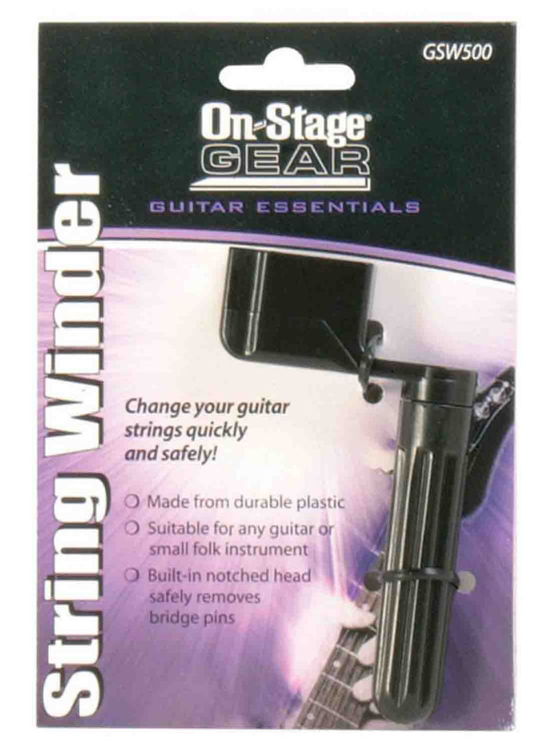 The On Stage GSW500 Guitar String Winder enables the user to quickly rotate tuner knobs with no wrist twisting and speeds up the process of changing strings on a wide range of guitars, banjos, and other folk instruments. More than just a winder, its built-in leverage notch helps remove acoustic bridge pins without marring the pins or guitar finish.