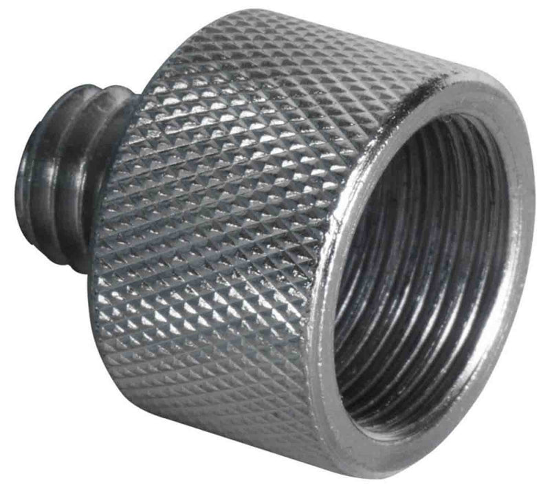 The On Stage MA-100 3/8" Male to 5/8" Female Mic Screw Adapter can be a versatile tool that uses any European boom arm or mic accessory you choose. Our Adapter quickly and easily allows European booms and accessories to fit standard stands. This adapter features a knurled outer flange for ease of tightening and loosening. Chrome finish.