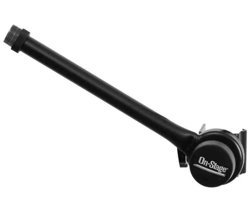 The On Stage MSA-9508 Posi-Lok Side-Mount Mini Boom's angle-adjustment clutch features interlocking teeth that fully stabilize angle settings. This boom provides mounting for an additional mic while conserving floor space by clamping to the tubing of existing mic stand shafts.