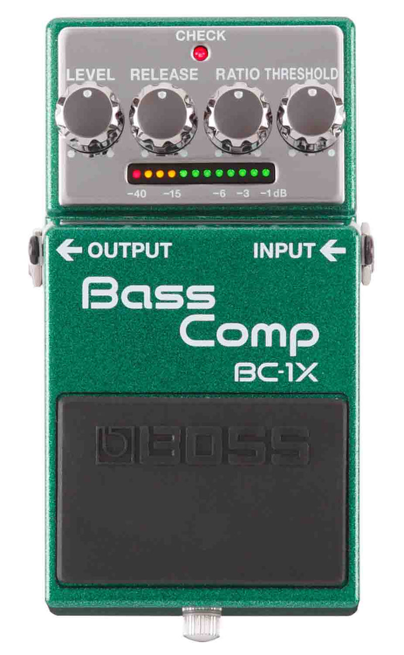 The BC-1X was designed with pro practicality in mind. The 18-volt input circuitry provides ample headroom without clipping, even with the hottest signals from active basses. A 12-segment gain reduction indicator clearly displays the amount of compression at all times, a high-end feature rarely seen in stompbox compressors.