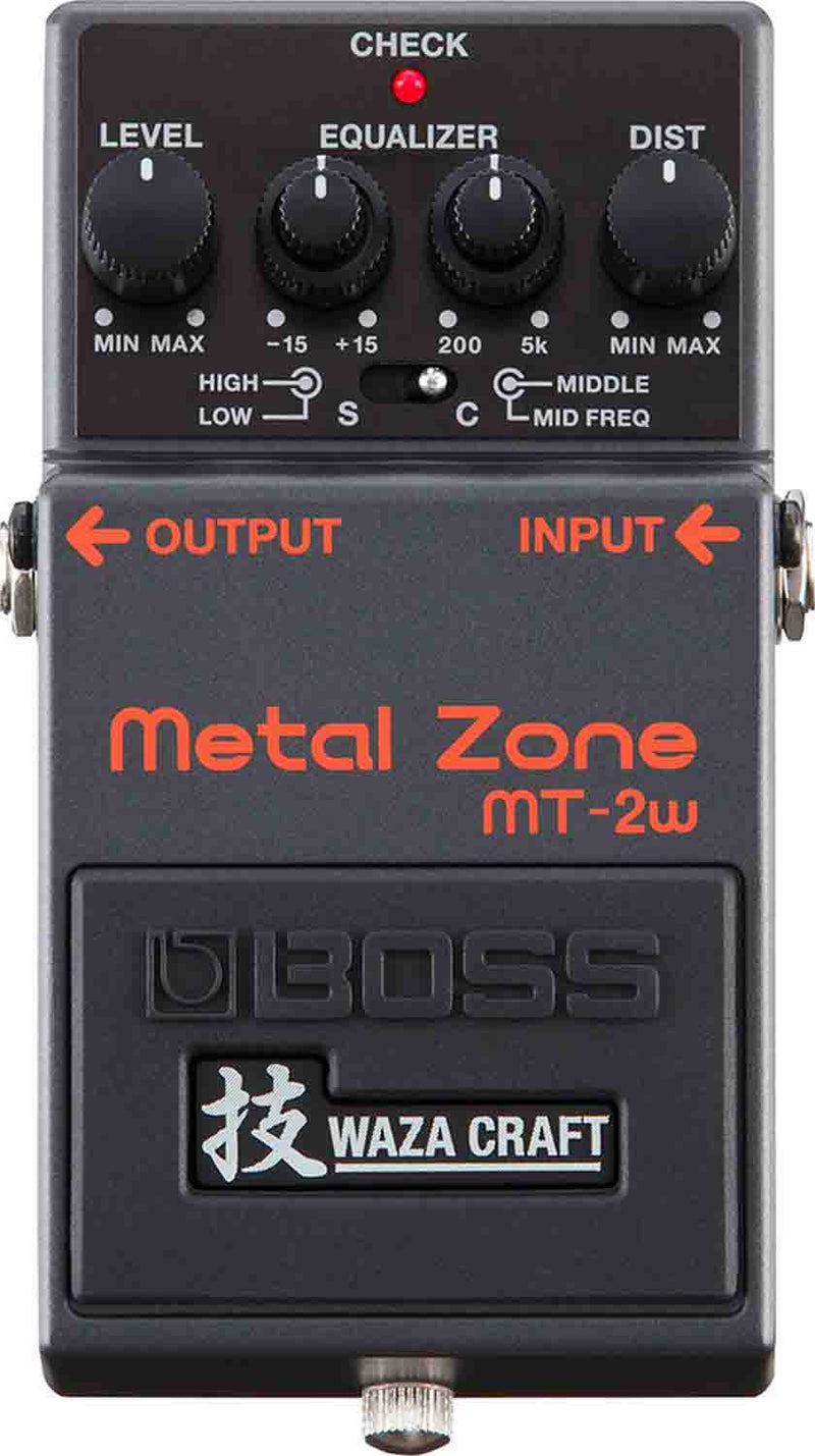 The BOSS MT-2W Metal Zone Waza Craft Distortion Pedal for Electric Guitars has been one of the most popular and influential compact pedals in the BOSS lineup, with overall sales that are second only to the venerable DS-1 Distortion. Made in Japan and infused with Waza Craft mojo, the MT-2W takes the iconic stomp to new levels of tonal range and versatility. Standard mode delivers an evolved version of the original mid-focused Metal Zone tone, while Custom mode introduces a fresh, wide-ranging voice that’s perfectly suited for today’s diverse high-gain styles.