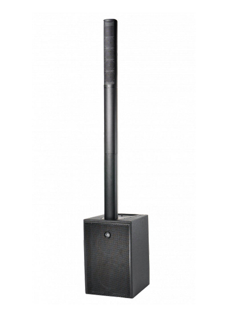 The Altea duo-20A is a 3-way ABS-injected powered portable column system with a wooden subwoofer, designed for mobile applications from corporate events, celebrations, and conferences to live music and more. Its two-channel Class D amplifier and universal power supply with 2000W peak power provides the power and dynamics that such an ultra-lightweight system requires. The DSP board incorporates DAScontrol technology with LCD display and a rotary knob for selecting multiple acoustic modes (presets) depending on how the system is used as well as access to other configurable options within the system’s menu. The DSP incorporates two independent mic/line inputs with their respective volume settings, plus a third instrument input designed for connecting keyboards, basses or guitars. Audio can be sent wirelessly from mobile devices and the entire system can be controlled with the DASLink GM app.