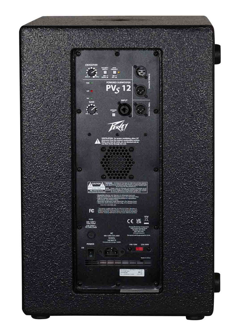 The Peavey PVs 12 is a 1000W 12-inch Powered Subwoofer. This powered sub's vented enclosure houses a proprietary 12-inch woofer, which works alongside a state-of-the-art Bass Enhancement feature to ensure rafter-shaking bass. Beyond that, a built-in crossover and highpass outputs provide maximum flexibility in a myriad of applications with a wide range of speakers. The PVs 12 boasts DSP-based compression, limiting, and equalization, plus a XLR/quarter-inch combo input jack, a ground lift, and a polarity reverse. The ultra-compact PVs 12 includes a threaded pole mount with a speaker pole included. If you're searching for a compact, portable powered sub, the PVs 12 fits the bill.