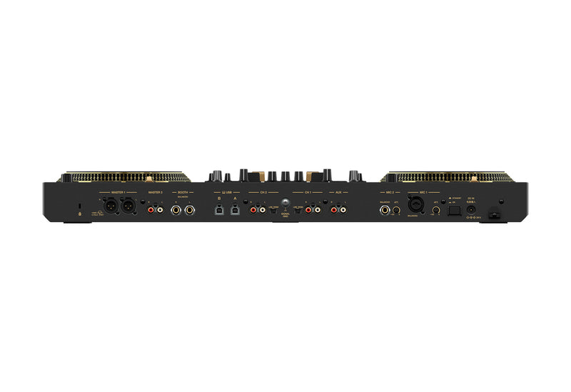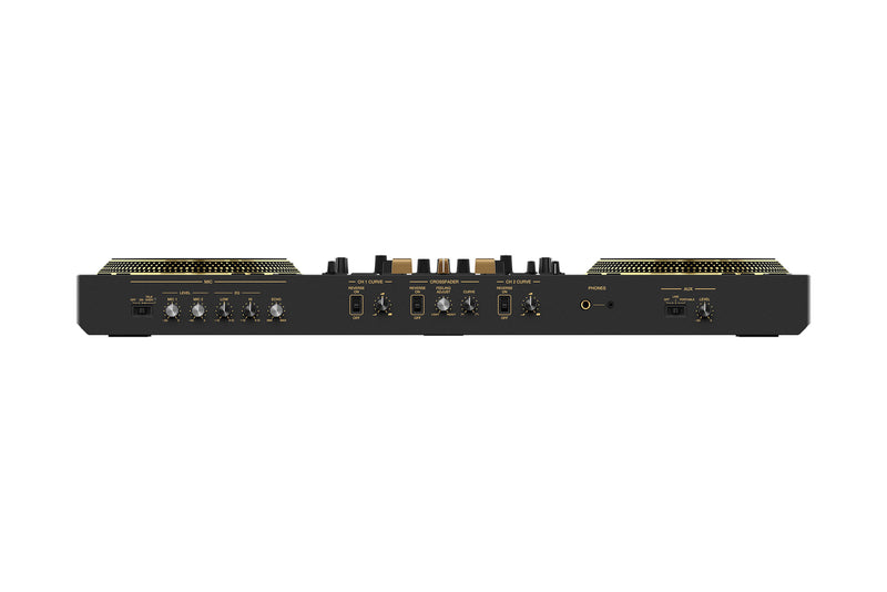 The Pioneer DDJ-REV7-N Scratch Style 2-Channel Professional DJ Controller for Serato DJ Pro - Black and Gold is built to help you get the most from the Serato DJ Pro and Rekordbox performance software and boasts a brand-new design that includes large, motorized jog wheels with On Jog Display to create a tactile connection between you and your music. The layout of this 2-channel unit emulates a professional DJM-S mixer + PLX turntable setup, and includes specialized features for open-format and scratch DJs.