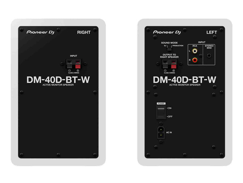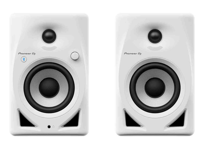 The Pioneer DJ DM-40D-BT-W 4-inch Desktop Active Monitor Speaker with Bluetooth - White. The DM series speakers deliver balanced, punchy bass sound and they can pump out extra power thanks to the new Class D amplifier and 4-inch woofer in each unit. Flick the switch to change from DJ mode to Production mode and the DSP settings will automatically create the best sound for each application.
