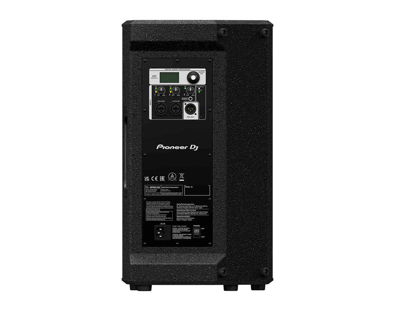 The Pioneer DJ XPRS102, 10-Inch Full-Range Active Loudspeaker. The XPRS2 Series employs Class D Amplification with high output wattage for a powerful and premiere audio experience for performers and listeners alike. Pioneer DJ’s all-new XPRS2 Series features a sleek all-black, protective plywood cabinet for performance in harsh indoor and outdoor environments. The series models all come with a durable handle to support system portability and handling during setup and take down. The XPRS2 Series also features rubber feet to create separation and shock absorption between surfaces.