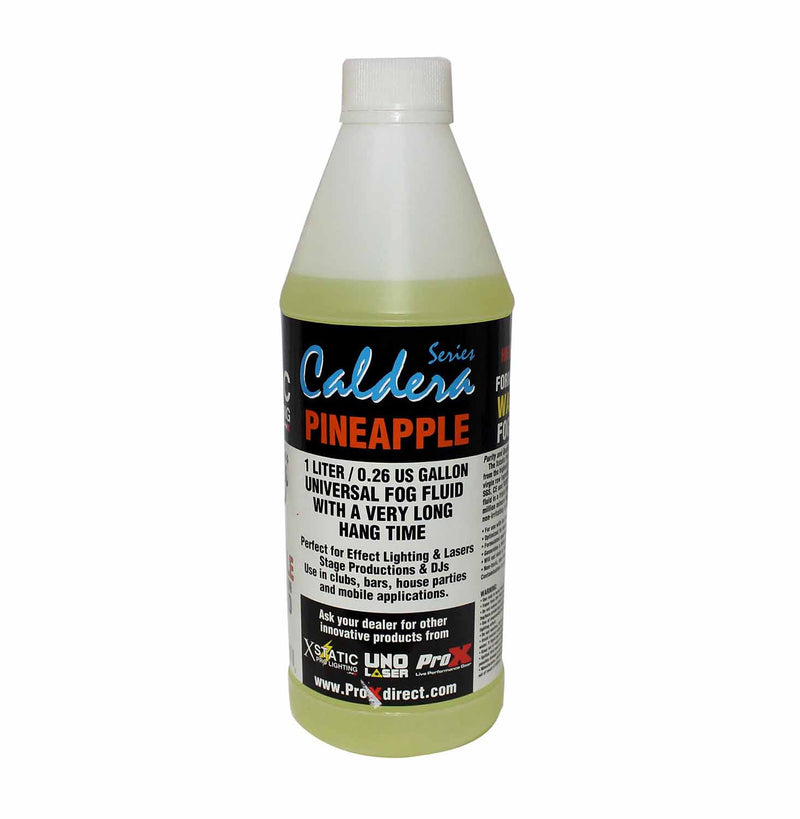 The ProX FJ-Q-P is a Pineapple Fog Juice - 1 Quart bottle. The FJ-Q-P PINEAPPLE DJ Fog Fluid Water Based Fog Machine Liquid Replacement. Our Fog Liquid is a premium-quality solution for achieving exceptional airborne fog effects. Made in the USA, our fog liquid is crafted using only the finest pharmaceutical-grade chemicals, virgin raw ingredients, and purified water. We adhere to the highest standards set forth by FDA, SGS, CE, and ROHS to ensure optimal safety and performance. This water-based fluid is a triple-filtered blend that contains less than five parts per million of mineral impurities and is designed to produce a clean, dry, and scented fog in most conventional water-based fog machines/hazers.