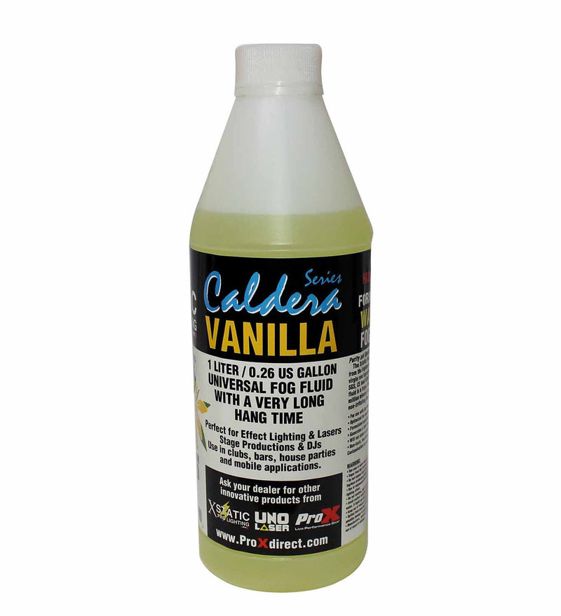 The ProX FJ-Q-V is a water-based vanilla flavor fog fluid for fog machines.