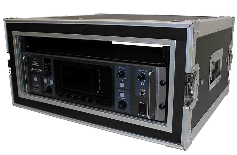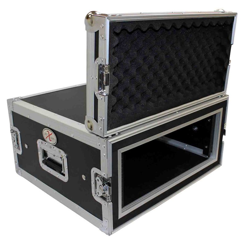 The ProX T-4RSP is a 4U Shockproof ATA Flight Case 20 Inch Depth Shockproof amplifier rack case is the perfect storage solution for convenient security for a wide variety of amplifiers, pro DJ mixers, effects and any other standard 19" width rack-mountable pro audio/DJ/Network gear.Built with a heavy-duty construction design and dual mounting rails your equipment won't dislodge or slip, and strain on the rack ears will be minimized. These professional-grade products also include external spring-loaded handles and butterfly twist latches and padlock ready for added security. The rubber feet at the base will ensure maximum stability when stacking multiple units. The T-4RSP case is assembled with thicker 3/8" plywood for premium protection. In addition to the heavy-duty design and convenient features of the T-4RSP, this case is a stylish, durable, and dependable product that will last a lifetime.