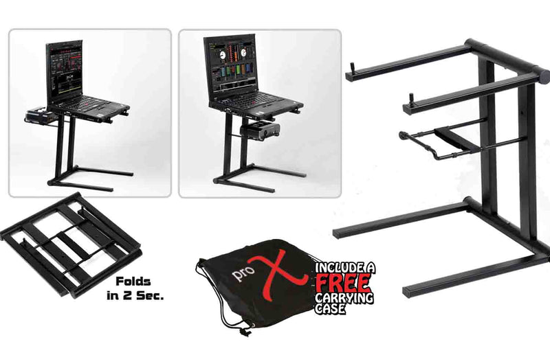 The ProX T-LPS600-BLK, Foldable Portable Laptop Stand with Adjustable Shelf - Black is an essential tool for the traveling DJ or Musician. Most DJ booths and performance venues were not designed to accommodate a laptop, which creates a hassle for the DJ in many places.