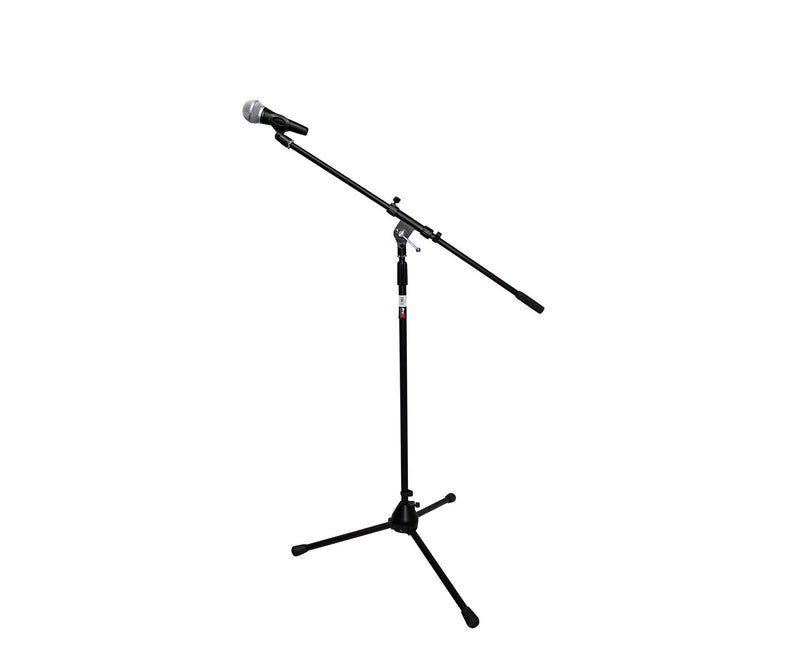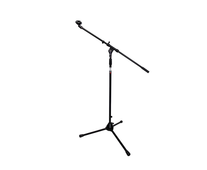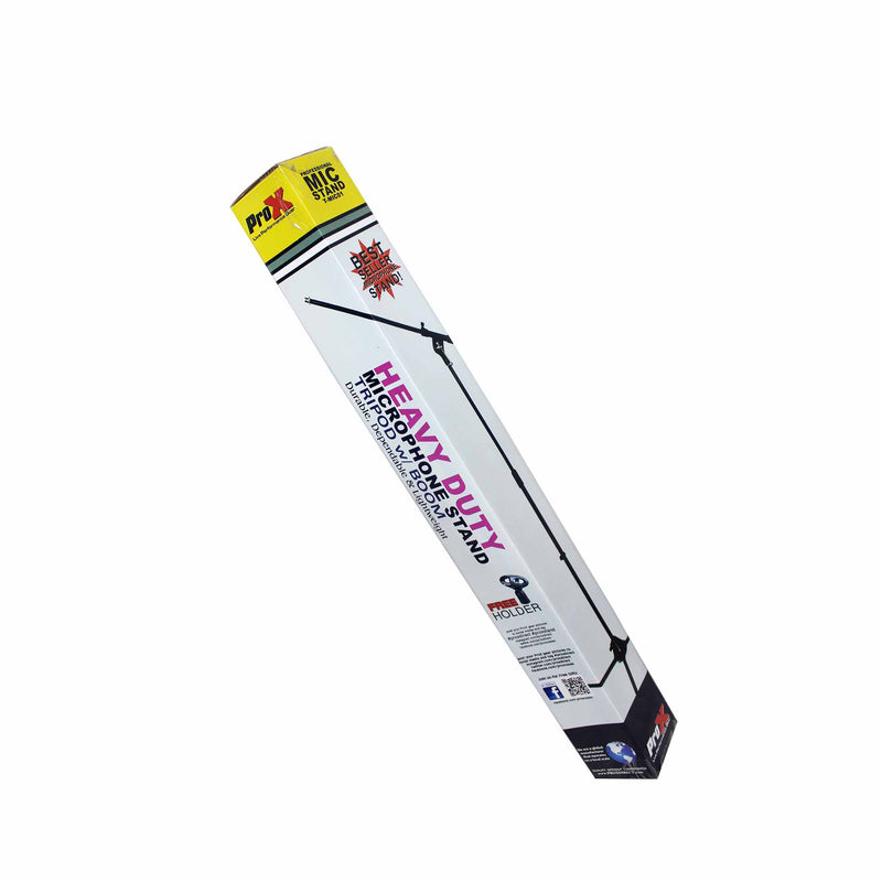 The ProX T-MIC01 is a Tripod Microphone Stand with Boom. The ProX T-MIC01 tripod-base microphone stands with a fully adjustable 32" boom, gives you the tough dependability you need, plus the lightweight and ease-of-use you want! The T-MIC06 features a 32" tripod base that's compact enough to take up minimum space on stage or in your studio, but provides plenty of stable support. This stand transports easily and provides adjustment between 36" and 66". You get a heavy-duty clutch that makes your height adjustments stay put. You get professional quality performance at a very economical price with the ProX T-MIC01 stand! A microphone clip is included.