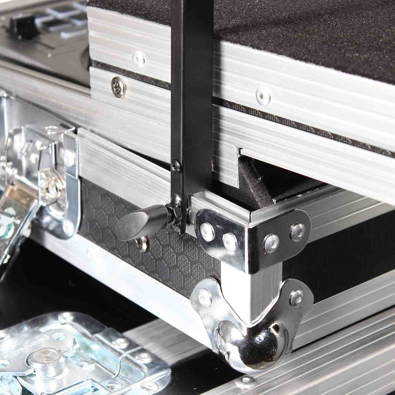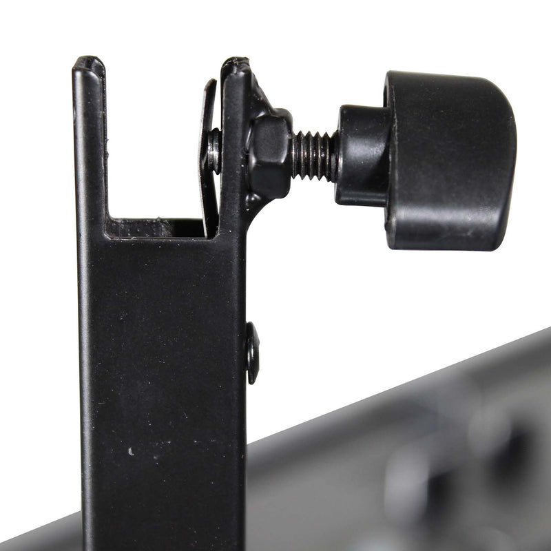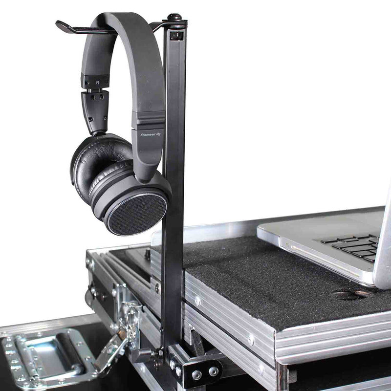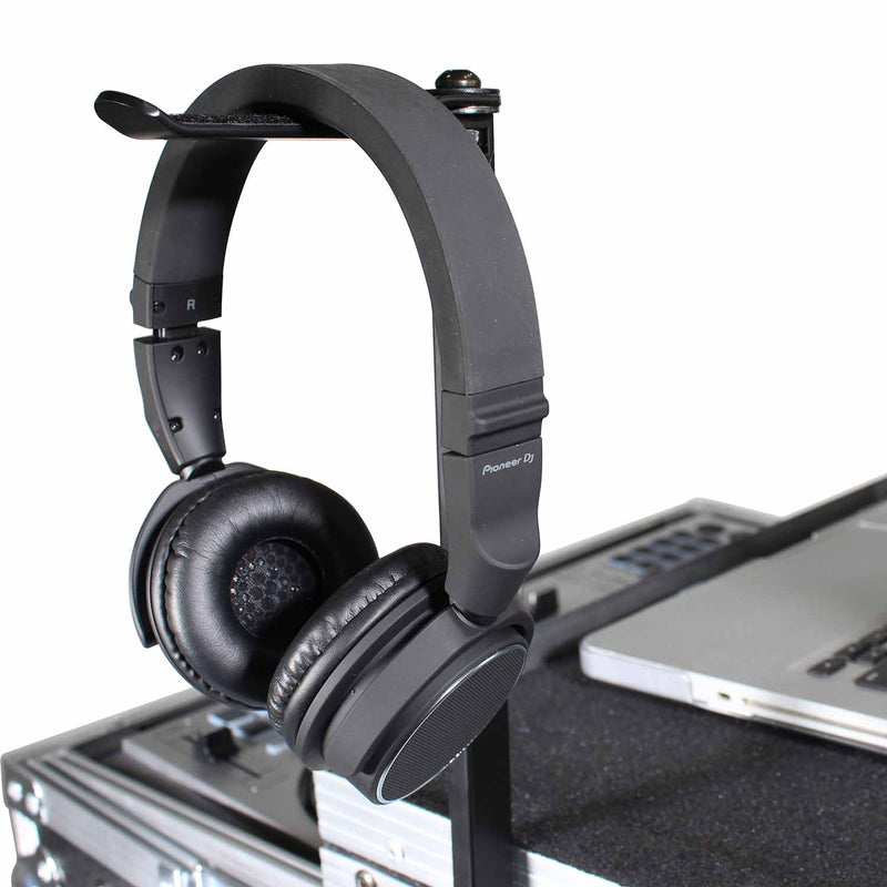 The easy to attach unit has an easy thumbscrew clamp at the bottom that will fit virtually any flight case vertical side. The rotating hangar bar is on a nylon tensioned connector to hold your headphones in any position you find convenient. The compact structure and small volume saves space. It is easy to bring along wherever you go.