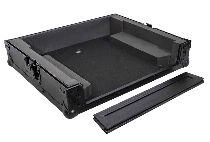 ProX Gig-Ready Series cases are constructed from rugged 3/8" Plywood, reinforced with steel ball corners, spring-loaded recessed padded handles, and twist-locking latches. There is additional space for cables and small accessories at the rear underneath the controller for convenience. The removable front panel allows for easy access to the DJ controller front control knobs, headphones, mic jacks, etc.