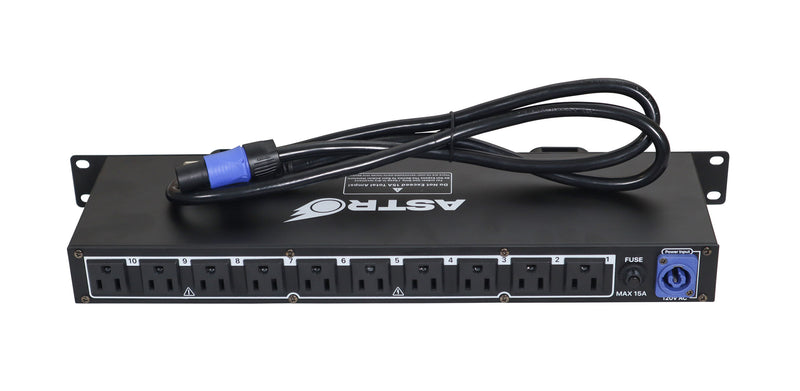 The ProX X-PC10ASTRO 10 Channel Power Rear Panel Center Power Distribution 1U Rack Mountable LED Lamp 5V USB port. Introducing the ProX X-PC10ASTRO 10-Channel Power Rear Panel Center - a robust and feature-packed power distribution unit designed to meet the demands of professional audio and video setups. With its 10-way power distribution capabilities, this power center provides ample connections to power a wide range of devices and equipment, ensuring seamless operations in complex production environments.