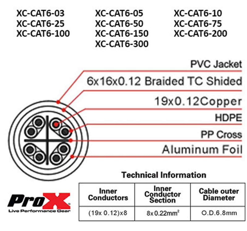 The Prox XC-CAT6-10 is an STP Cat 6 Cable W-RJ45 for Network and Snake Box Connections - 10 Feet is a Shielded Twisted Pair (STP) Category 6 cable for touring sound and permanent installations, Audio/Video stage technology, and DMX systems, Digital Snake for Stagebox or Data Link Cable. ProX cables are built with uncompromised quality with excellent performance at each connection - Instrument cables, Speaker cables, RCA cables, DMX cables, Power cables, and more. Our cables are made for professionals, by professionals.  We know that cables are not just cables, they are what protects your sound, signals, and data from being altered.  Uncompromised signal power, frequency handling, and data reproduction are what we are passionate about.