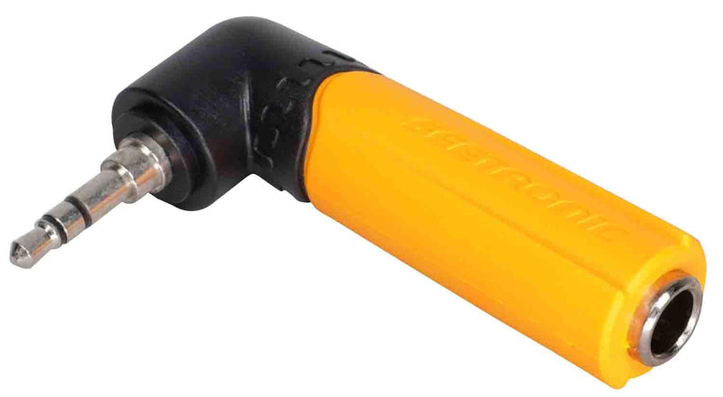The ProX XC-MMJ3-PM-R is a Professional 1/4" Female to 1/8" Male Stereo Right Angled Adapter BY SEETRONIC. Great for applications where an angled connection is required for tight spaces inside of a case, desk or studio rack. This adapter converts a 1/4-inch TRS Male cable to a Stereo 3.5mm headphone/mic jack.