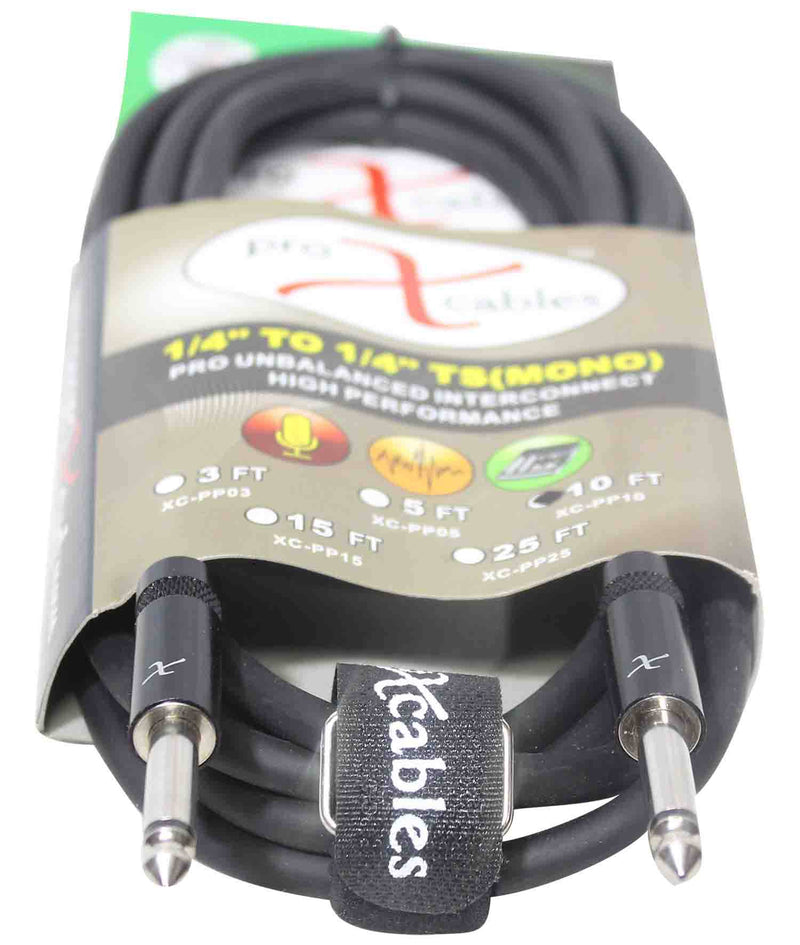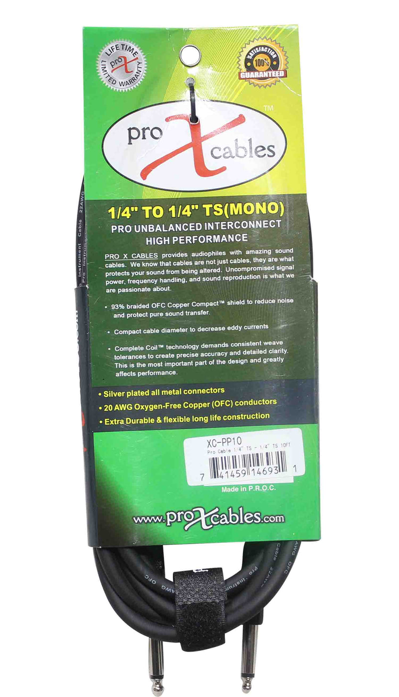 The Prox XC-PP10 is an Unbalanced 1/4" TS-M to 1/4" TS-M High-Performance Audio Cable - 10 Feet is ideal for professional touring and live sound applications where a device with a 1/4" output/input needs to be connected to a device with a 1/4" output/input. 20AWG Oxygen-Free Copper (OFC) conductors for maximum signal transfer.