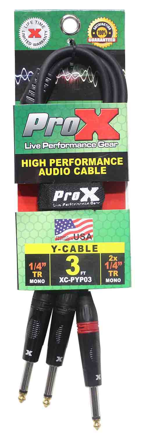 The Prox XC-PYP03 is a 1/4" TS-M to Dual 1/4" TS-M High-Performance Audio Cable - 3 Feet is ideal for professional touring and live sound applications where a device with a Dual TS-M output/input needs to be connected to a device with a 1/4" TS output/input. ProX cables are built with uncompromised quality with excellent performance at each connection - Instrument cables, Speaker cables, RCA cables, DMX cables, Power cables, and more. Our cables are made for professionals, by professionals.