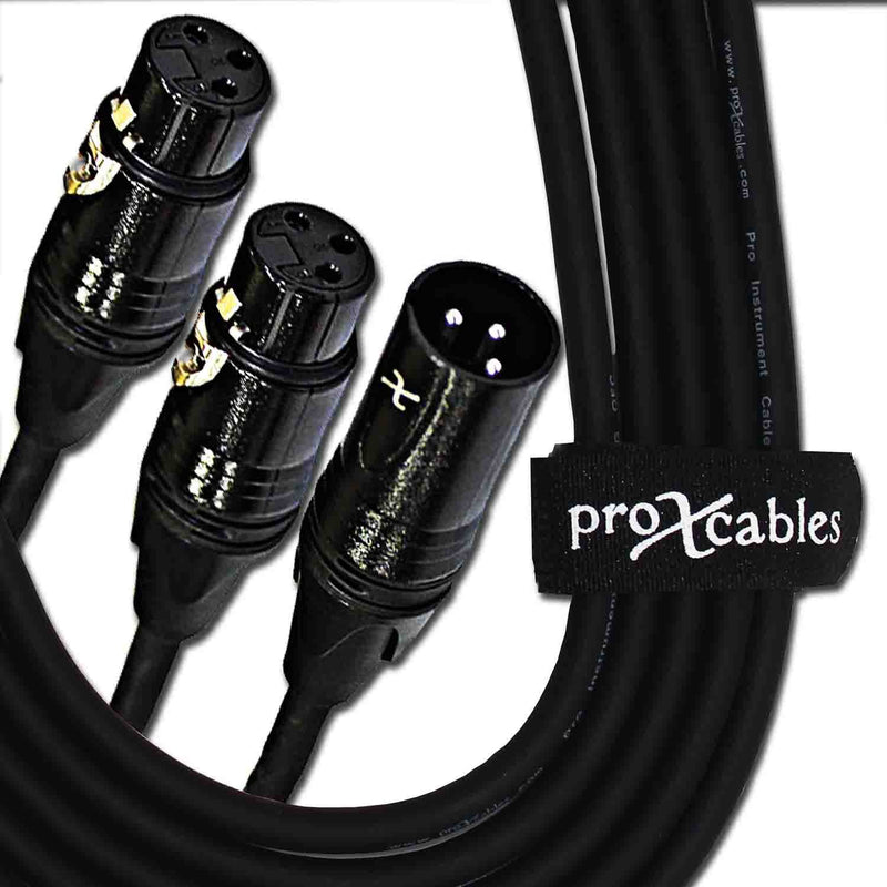 The Prox XC-YXM25 is a Balanced XLR-M to Dual XLR-F High-Performance Audio Y Cable - 25 Feet is ideal for professional touring and live sound applications where a device with a Dual XLR-F output/input needs to be connected to a device with an XLR-M output/input. 93% braided OFC Copper Compact shield to reduce noise and protect pure sound transfer. Compact cable diameter to decrease eddy currents. ProX cables are built with uncompromised quality with excellent performance at each connection - Instrument cables, Speaker cables, RCA cables, DMX cables, Power cables and more. Our cables are made for professionals, by professionals.