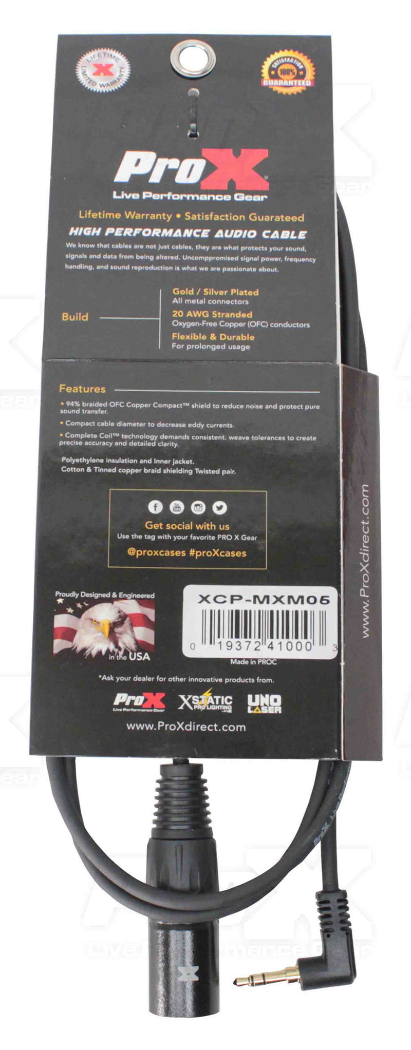 The Prox XCP-MXM05 is an Unbalanced 1/8" TRS Mini to XLR-M Premium Audio Cable - 5 Feet is a Single 1/8" (3.5mm) TRS Mini to Single XLR-M 5ft. Cable, made for perfect quality sound. The L+R are combined and connected to Pin 2 of the XLR to provide a mono signal from both channels to a single connector. ProX cables are built with uncompromised quality with excellent performance at each connection - Instrument cables, Speaker cables, RCA cables, DMX cables, Power cables and more.Our cables are made for professionals, by professionals.