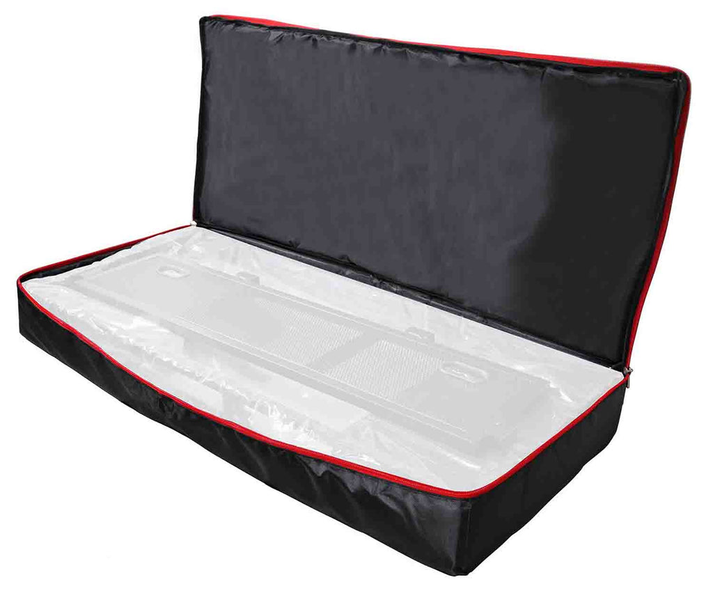 The carrying straps are dependable positioned to carry each load evenly. The interior is made of padded soft material to provide additional protection while gigging or on tour. This bag can also be used for carrying large poster frames or canvas prints. The strong and durable double-ended red zipper complements the design of the bag.
