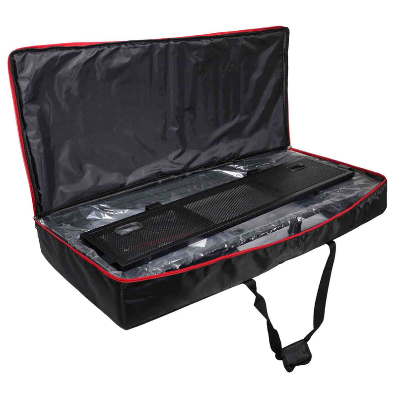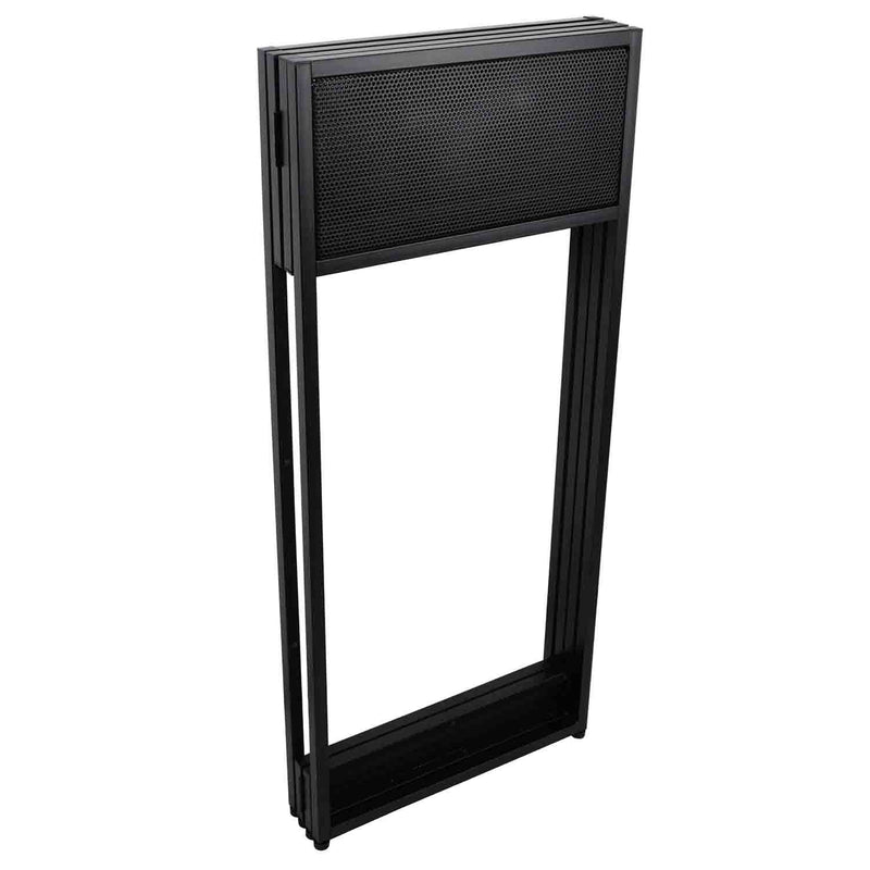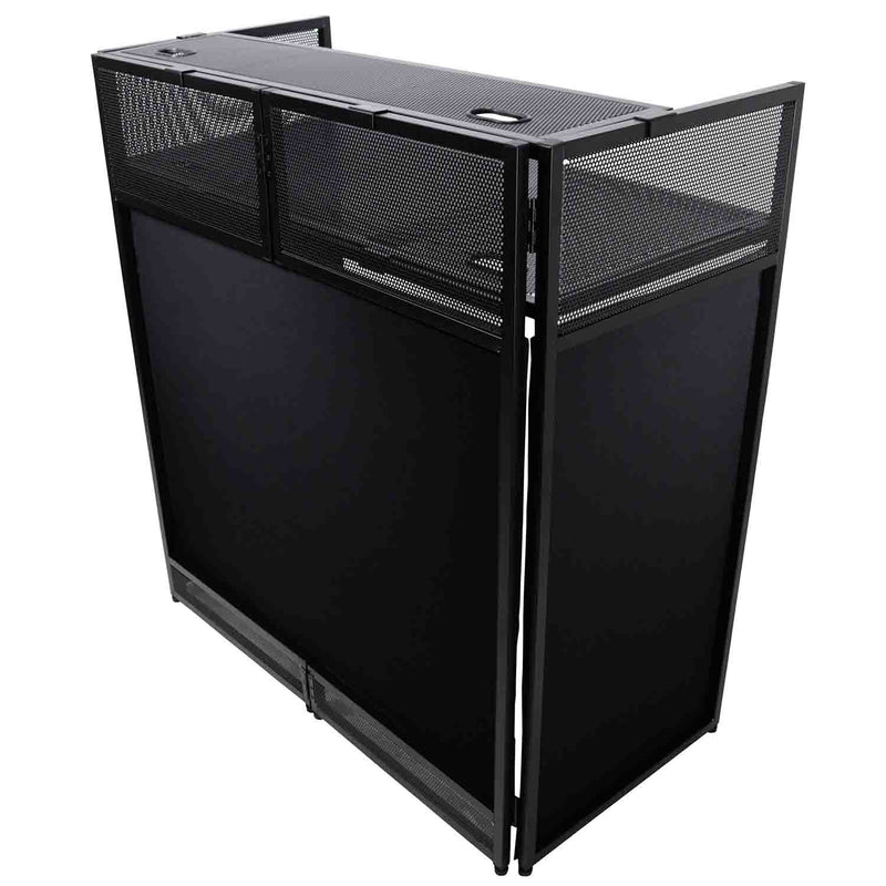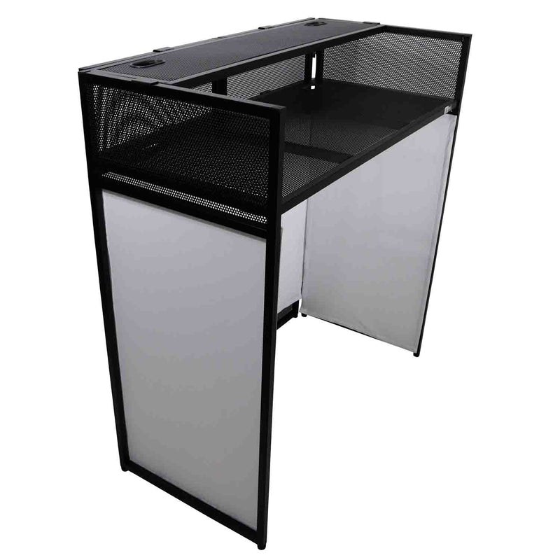 The XF-VISTA BL MK2 Vista DJ Booth and Workstation give you an elegant professional look. With its strong and lightweight 3 sided folding aluminum frame with a black finish. This media added DJ booth Is all you need for an exceptional DJ station. The setup of the system is easy and takes less than 5 minutes. Two cable pass-throughs on the tabletop. The XF-VISTA w/ White & Black scrim kit with velcro style hook and loop closure, It comes with 3x black and 3x white scrims. It comes with two separate carrying bags for the scrims and a padded carry bag for the folding workstation itself. The work table is designed to hold up to 100 lbs evenly distributed and has a ventilated design to keep your equipment cool.