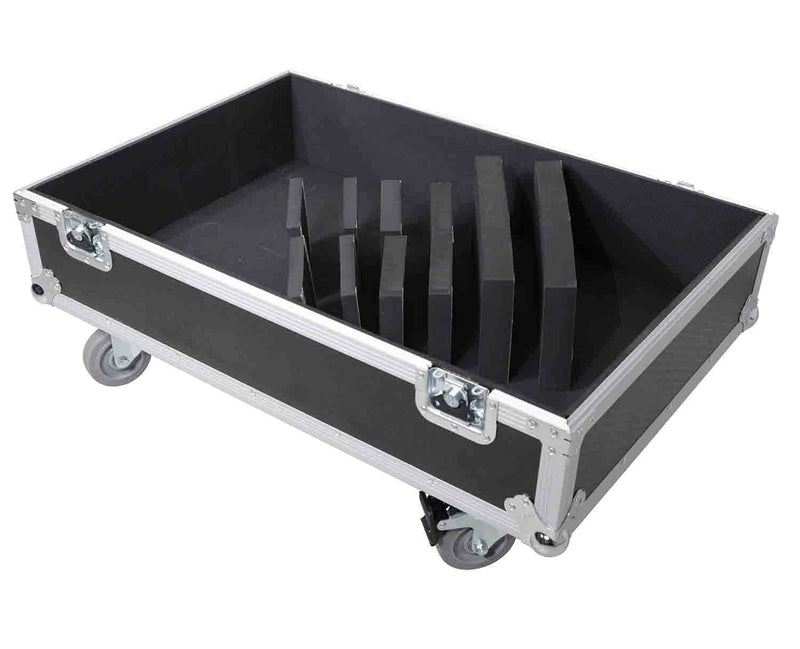 The ProX XS-322127SPW is a Universal Flight Case for Line Array Speaker with Caster Wheels and Holds QSC KS118. The perfect case for AV production companies, touring bands, entertainment groups, and mobile DJs. This case rests on four 4" casters designed for easy traveling, it also comes equipped with caster dishes on top to facilitate stacking with other flight cases. This professional speaker case employs a 3/8" Laminated Honeycomb Plywood that has a hard shell with internal impact-resistant padding to provide the best protection for your investment. No matter where you take your speakers you can have peace of mind, nothing will get damaged during transit or in storage. Protect your investment with ProX Cases.