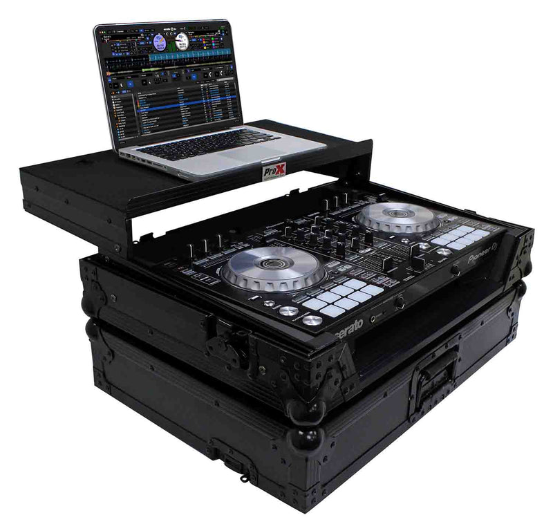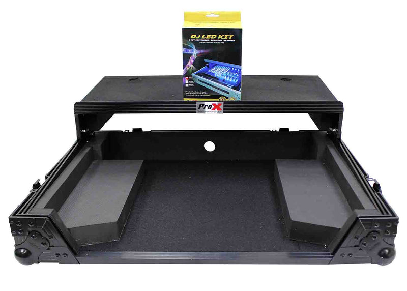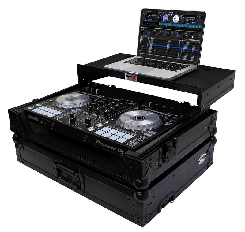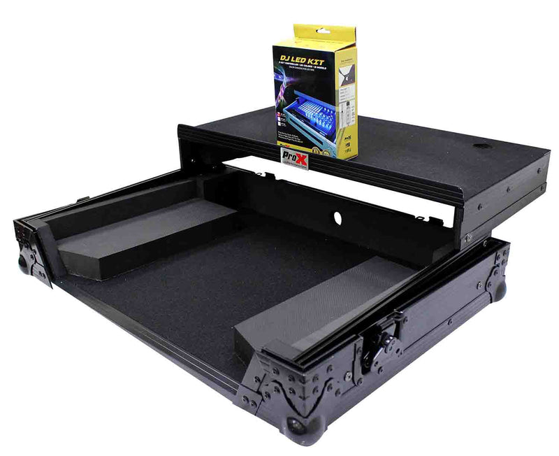 The ProX XS-DDJSR2LT LED is a Flight-Road Case for Pioneer DDJ-SR2 Digital Controller W/Laptop Shelf & LED Kit is constructed with our rugged signature 3/8" Gig-Ready Series Plywood, reinforced steel ball corners for protection and easy stacking, and recessed steel paddled handles and latches to protect them from damage during transport.