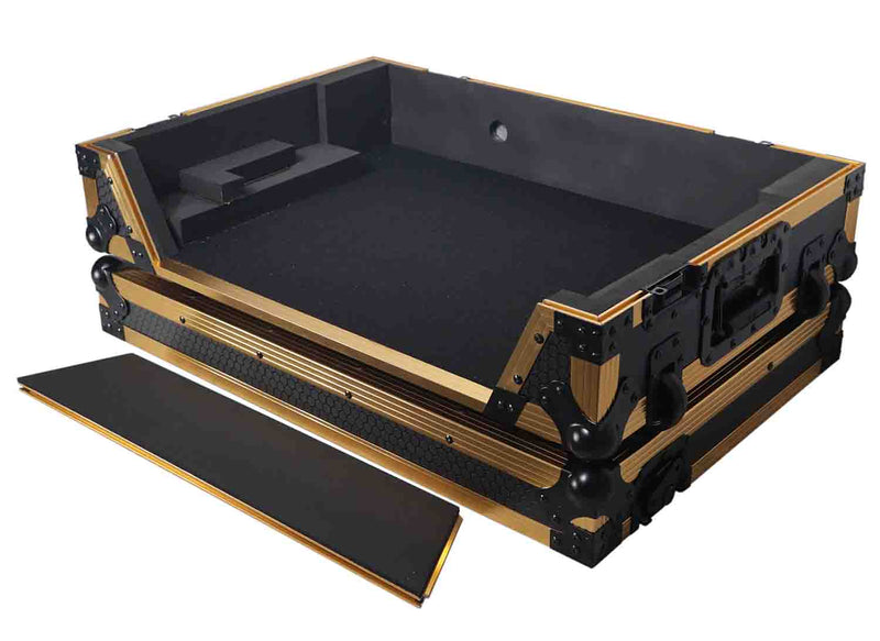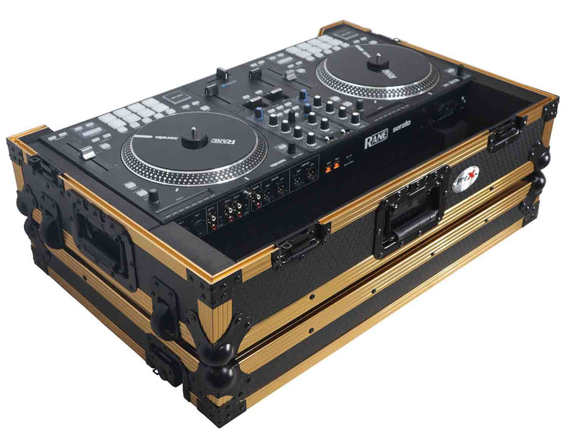 The ProX S-RANEONE W FGLD Digital DJ Controller case is forged from the highest quality materials and workmanship. It comes equipped with 19" 1U Space with Rack Mounting hardware, Sliding Laptop Shelf and additional 4-inch space at the rear for cables/mics/etc.