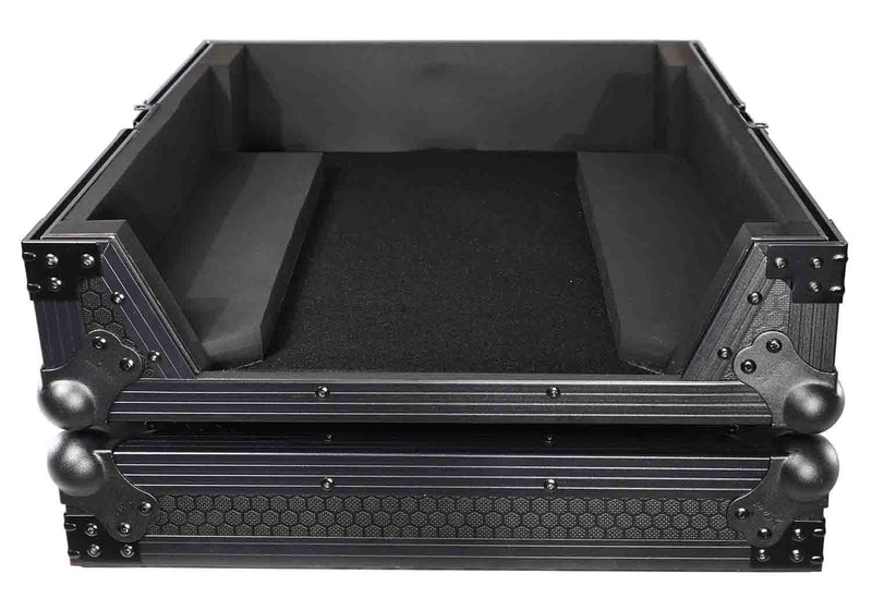 ProX Gig-Ready Series cases are constructed from rugged 3/8" Plywood, reinforced with steel ball corners, spring-loaded recessed padded handles, and twist-locking latches. There is additional space for cables and small accessories at the rear underneath the controller for convenience. The removable front panel allows for easy access to the DJ controller's front control knobs, headphones, mic jacks, etc.
