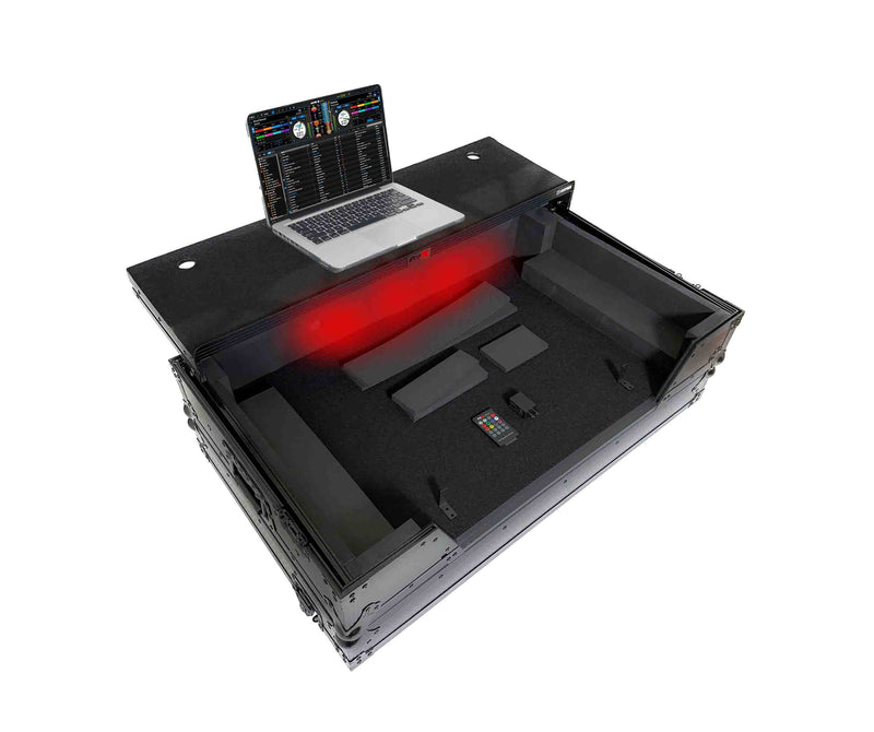 The ProX XS-XDJAZ WLTBL Case provides excellent protection for the Pioneer XDJ-AZ and ease of use for you. The fact that the XDJ will work with Serato and Rekordbox on a laptop is great, so we added a sliding laptop shelf for easy use! There is additional space for cables and small accessories in the back and underneath the unit for convenience, and a removable front panel to access front input jacks easily and access the front 1U rack space, and it also comes with LED!