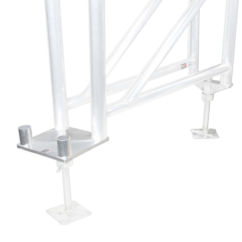 The ProX XSQ-ZLA4 Z Frame 4 Leg Adapter for StageQ MK2 Staging System for use with the XSQ-ZF35 Z Frame 3-5Ft Adjustable Support for StageQ MK2 Series Stages. These leg adapters provide for a method of joining the base tube of multiple Z Frame sections and a single leveling point of those junctions. The Z frames provide an additional level of support and horizontal bracing not available when using single pipe telescoping legs. For heavy loads and staging with lots of potential movement on it, these will provide an extra level of safety and convenience.