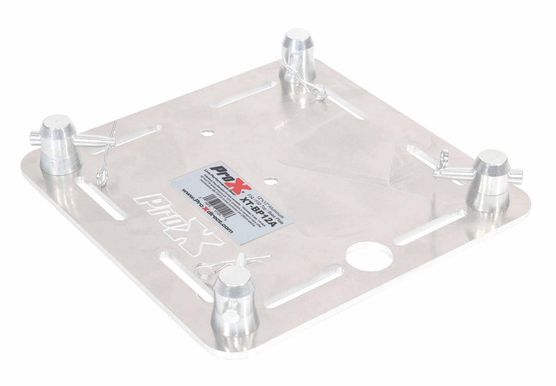 The ProX XT-BP12ASPSTX2, Pair of 12" Aluminum 6mm Truss Top Plate and 1-3/8 Speaker Stud Mount for F34 F32 F31 Conical Square Truss with Connectors This 12" x 12" Aluminum 6mm thick base plate is forged out of tough EN-AWT6 6082 Aluminum material. Most professionals trust us for the quality and reliability of our products. Its robust build gives you all the confidence you need when combining your truss segments and or any other compatible products. Includes connecting hardware set. We use industry-standard dimensions that are compatible with most other truss manufacturers. Our Truss segments are welded and manufactured in our own factory.