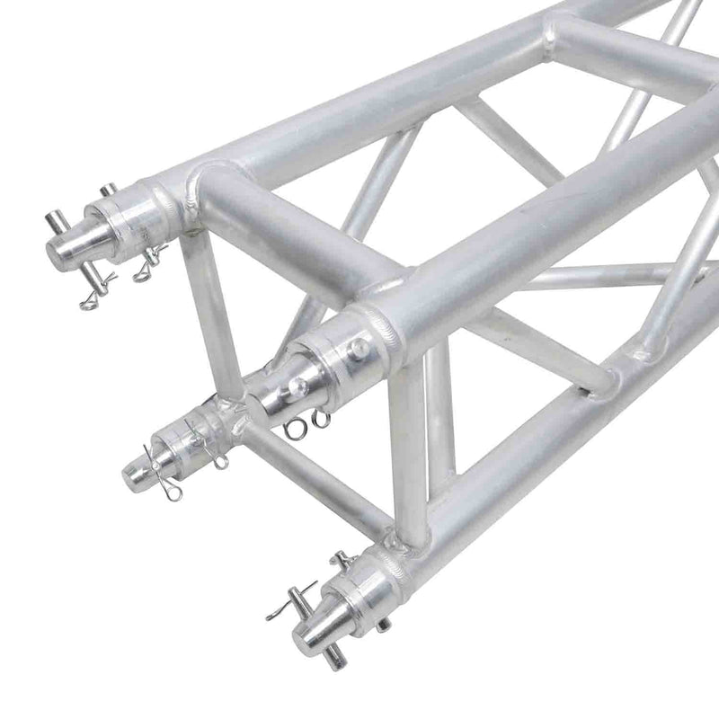 The Easy to Climb, Professional Ladder Truss system is a square truss that has one side as a ladder with 2" tubes with 9 3/4" spacing and utilizes a standard conical connector system, which easily mates with other brands of truss of the same size and connector style, and is available in a variety of lengths to suit your designs. It also works with different types of corners, base plates, connectors, and accessories that add stability while expanding on limitless configurations. Always consult an engineer for complex designs.