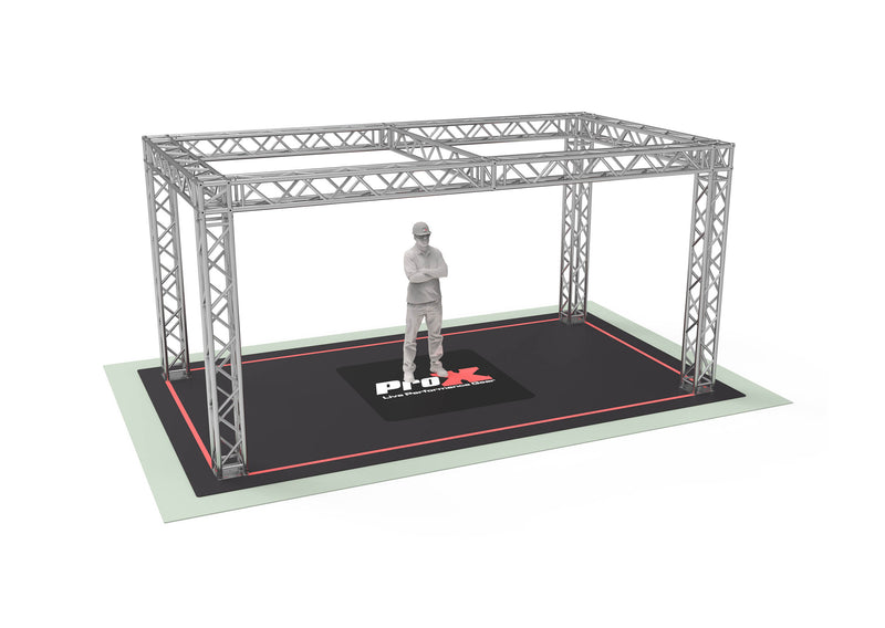 The ProX XTP-18109-F32 Trade Show Display Booth Truss System – 20 x 10 x 9 Ft. Ideal for Trade shows, Exhibits, Kiosks, DJ booths, Pop-Up Shops, Retail Spaces, Concerts, Performances, Speeches, and Church Gatherings. ProX Truss offers reliable staging support systems built to high safety standards. It's rugged yet lightweight, suitable for mobile or permanent installations.