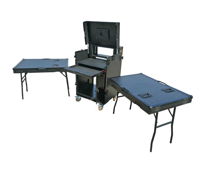 The ProX XZF-AVPRO12U4UBLK Mobile Flight Case for Audio Video Broadcast Streaming with 12U plus 4U Rackspace Black Finish is a mobile workstation case that can be used for Audio/Video Professionals in Broadcasting, Live Streaming, Audio Production, and more. This one-stop shop workstation desk is fully portable and allows you to mount and live in a 24-inch monitor or PC or Mac Towers, 4U Top Rackspace, and 12U Bottom Rackspace This is a great mobile solution for Live Audio and Video Producers, Recording Studio Producers, Musicians, Home Studio Artists, and Teachers.