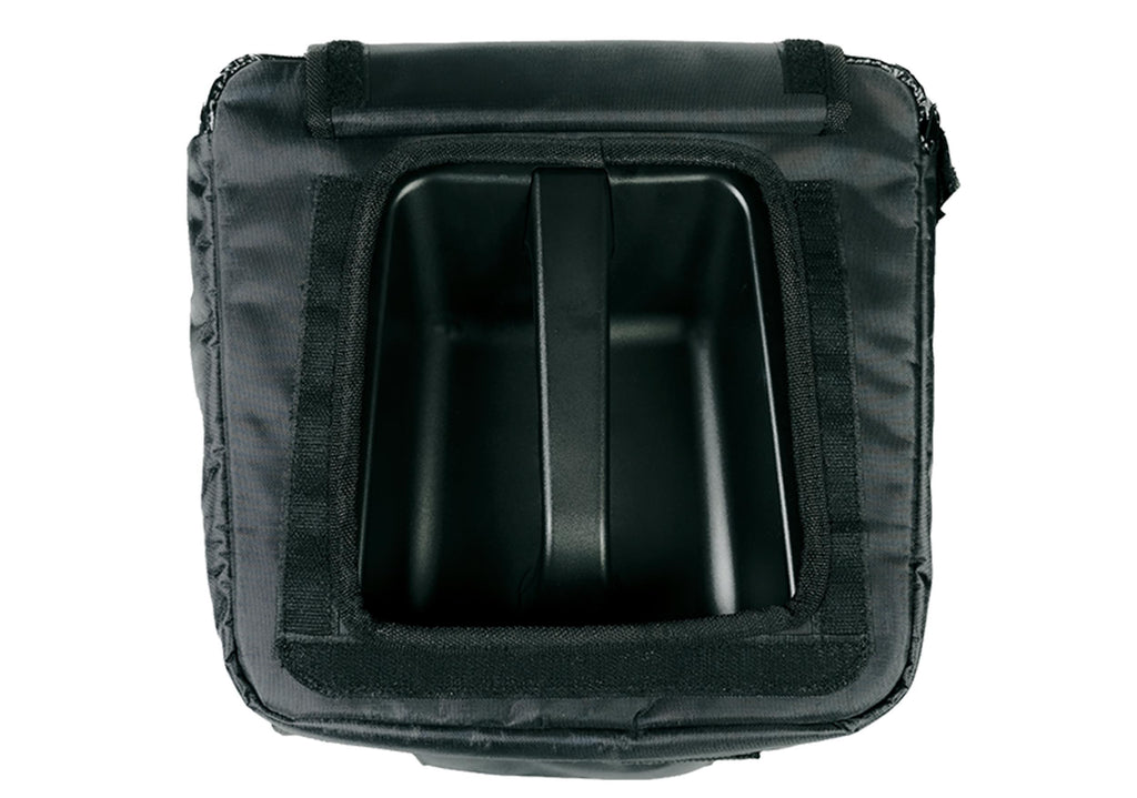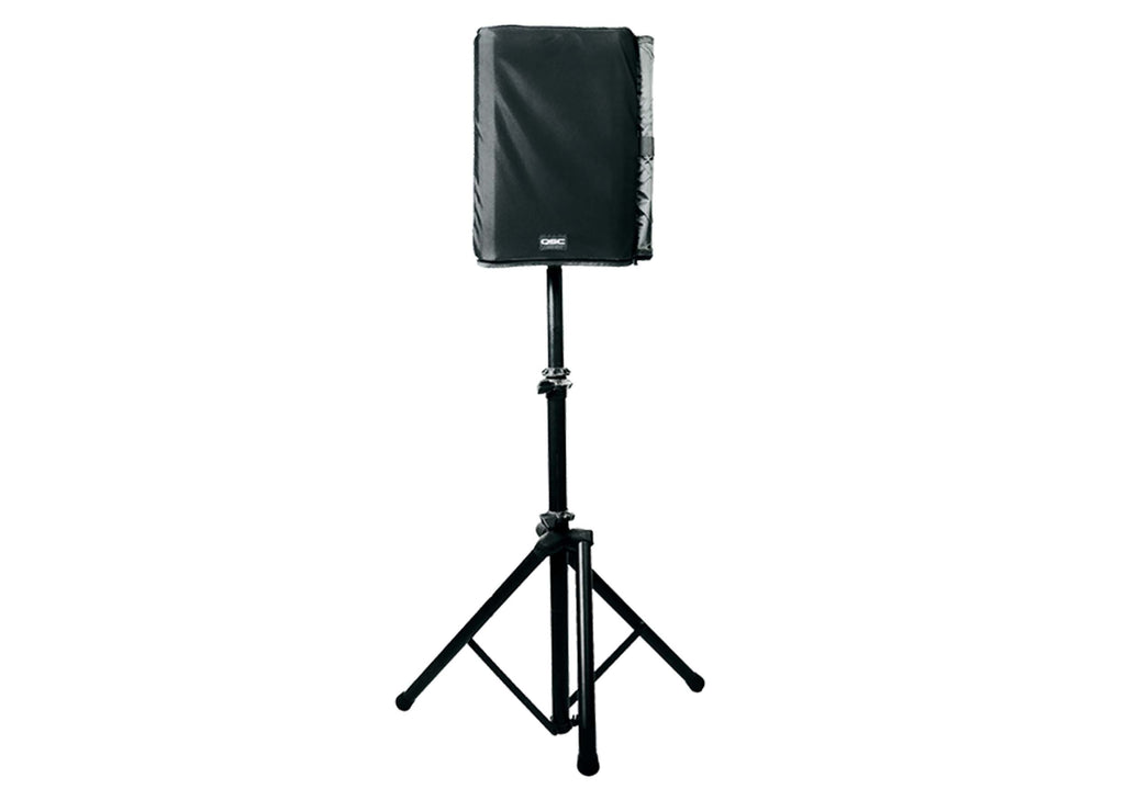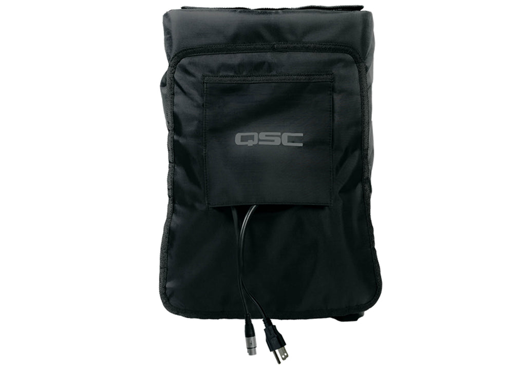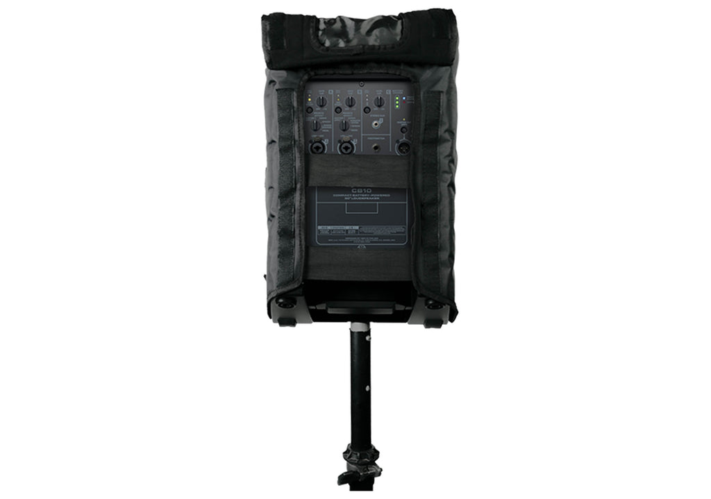 The QSC CB10 Cover is a durable protective cover designed for the transport and temporary outdoor use of the CB10 active loudspeaker. Made from rugged nylon fabric with hydrophobic mesh, it helps shield the speaker from dust, light rain, and adverse weather conditions. A removable amplifier panel provides easy access to rear connectors and controls, while the vented design ensures proper airflow for effective heat management during operation. This cover is ideal for mobile setups and events, but it is not intended for permanent outdoor installations.