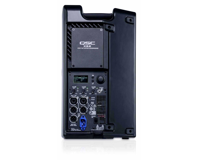 The QSC K8.2, 2000 Watt 2-Way Active Loudspeakers - 8 Inch is Audio engineers and rental houses looking for a portable, versatile, and simple to use PA will be thrilled with the 8" QSC K8.2, a 2000W powered PA speaker that functions as a main PA in a wide variety of positions and with a pair, can cover an audience up to 250. The onboard DSP processing, 3-input mixer, and LCD interface with easy-to-use presets help working presenters, musicians, instructors, performers, and A/V providers get powerful, clean, and clear sound quickly.
