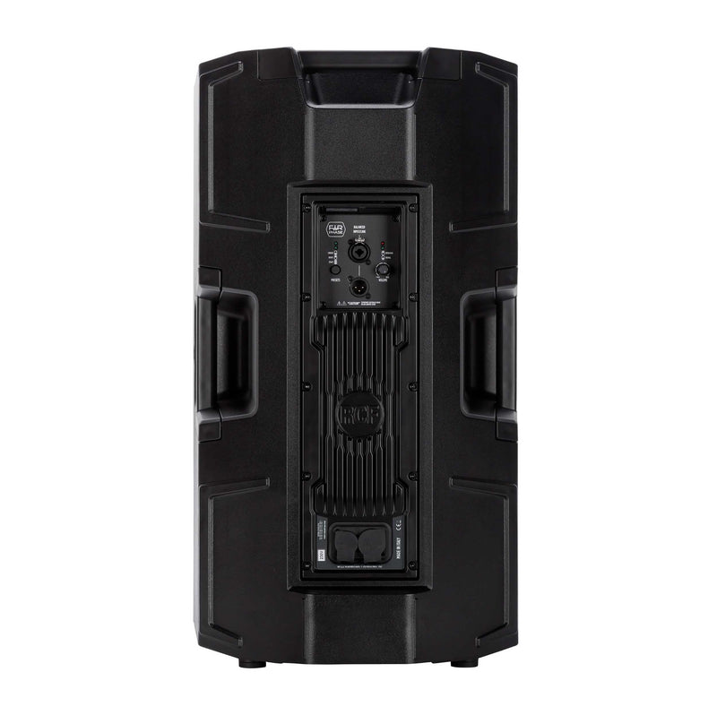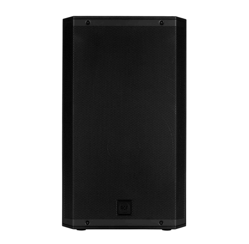 The RCF ART 945-A Two-Way 15" 2100W Powered PA Speaker with Integrated DSP is masterfully engineered to deliver stellar audio performance and versatility for intensive audio applications. The combination of neodymium transducers - 4" titanium compression driver, 15" woofer - two-channel 2100W amplifier, and the constant directivity True Resistive Waveguide produces coherent 100° x 60° coverage for the listening area with up to 135 dB SPL, distortion-free sound. Merging RCF proprietary FiRPHASE and Bass Motion Control DSP processing, perfectly tuned for each model, the audience will experience absolute clarity and deep, powerful bass response. The sleek cabinet uses a special polypropylene composite material with an M-brace internal reinforcement, making it easy to carry and secure to install on a pole, flown-, wall-, or truss-mounted using the multiple rigging points available.