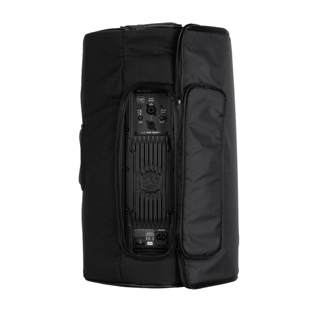 The RCF ART-COVER-912 Protective Cover for ART-912 / 932 features heavy-duty weatherproof polyester outer fabric, foam rubber padding, and zip openings with Velcro fasteners. The frontal cover can be opened and blocked with Velcro on one side. It features multiple openings for handles, for the rear connection panel, and the pole mount cap.