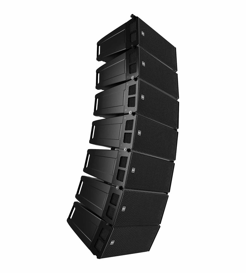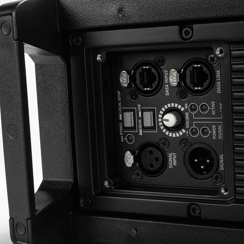The low-latency, 32-bit DSP section deploys a remarkable amount of processing power for live performances with straight-forward control and monitoring of single parts of the module, including rigging angles and transducer performance via RDNet