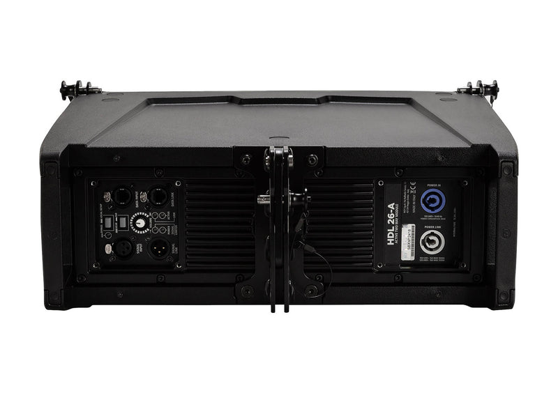 The RCF HDL26-A, 2000-Watt Active Line Array Speaker - Black is an active speaker module that can be used alone or as part of a long-throw concert line-array sound system for touring sound reinforcement for small to medium venues, concert halls, and outdoor events. The speaker provides ultra-linear amplitude response, exceptional vocal clarity, and controlled deep bass—while also being easy to stack and fly. It is well suited to withstand the rigors of live sound reinforcement or rentals applications in performance venues, clubs, corporate spaces, houses of worship, mobile DJ setups, and more.