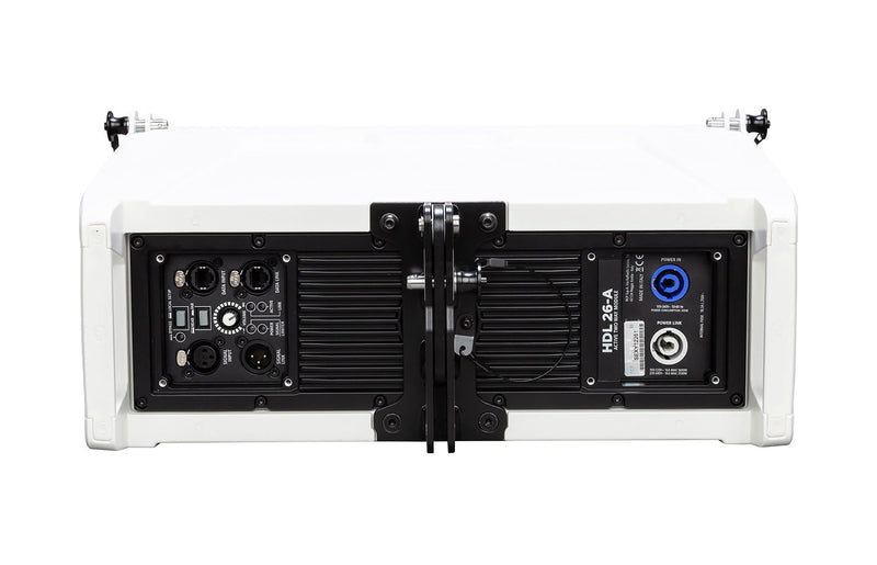 The RCF HDL26-A W, 2000-Watt Active Line Array Speaker - White is an active speaker module that can be used alone or as part of a long-throw concert line-array sound system for touring sound reinforcement for small to medium venues, concert halls, and outdoor events. The speaker provides ultra-linear amplitude response, exceptional vocal clarity, and controlled deep bass—while also being easy to stack and fly. It is well suited to withstand the rigors of live sound reinforcement or rentals applications in performance venues, clubs, corporate spaces, houses of worship, mobile DJ setups, and more.