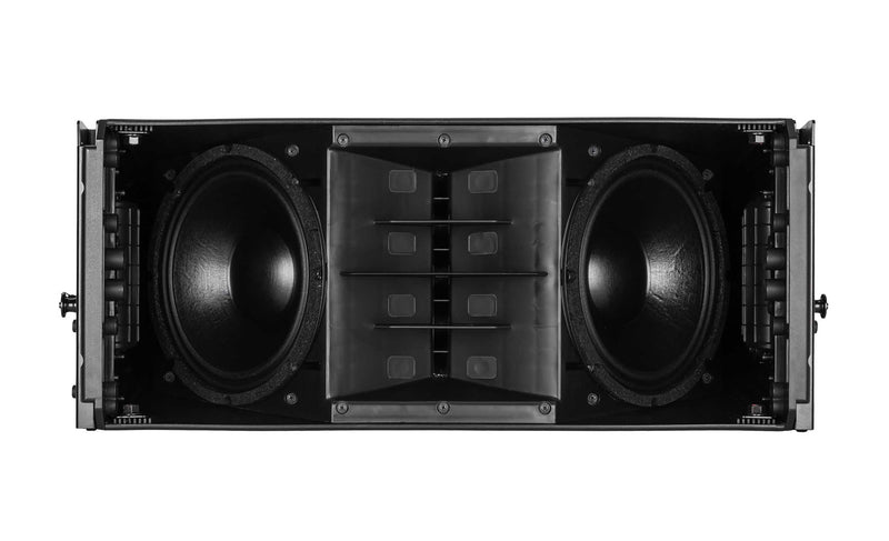 Dual 10" neodymium woofers feature water-resistant, fiber-doped cones, polycotton M-roll surrounds, and hyper-vented magnetic structures. Low-frequency reproduction extends down to 50 Hz.