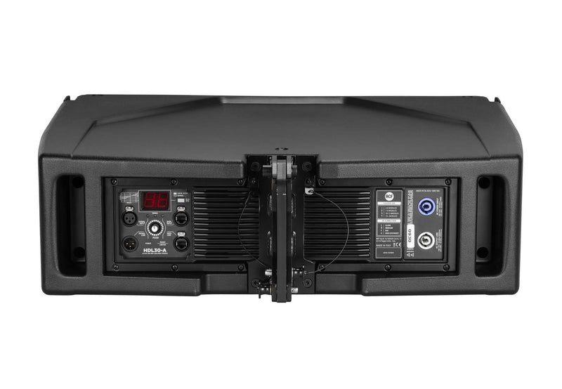 The sturdy composite polypropylene enclosure boasts a heavy-duty front grille and employs a rigging concept inspired by the RCF HDL-50A. Compared to its acoustical power, it has a low weight for easy handling and flying. The integrated mechanics are both fast and reconfigurable, allowing the system engineer to create J-shaped and spiral arrays starting with 0.2° angles. The angle can be adjusted beforehand to hang the system on the ground and automatically slip into the correct position when pulling up the array. Up to twenty HDL 30-A modules can be fastened on a single flybar.