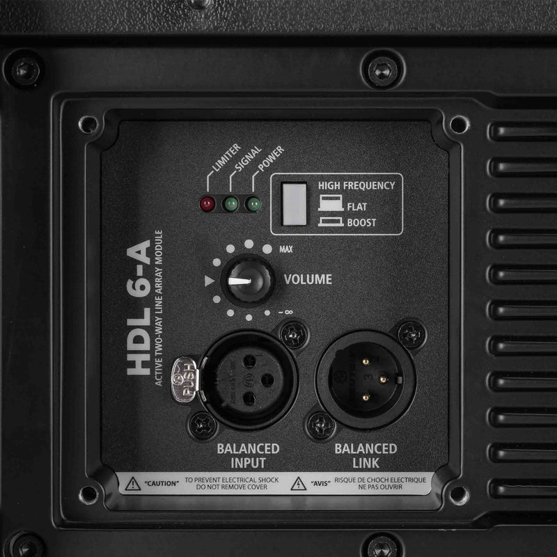The RCF HDL 6-A, a 2-way active line array module designed for live sound reinforcement, touring, and installed sound applications. HDL6-A is the ideal choice when line array performance is needed and a fast and easy set-up a must. A 1400 W 2-channel class-D amplifier powers the system. A powerful DSP processes the sound including crossover, phase correction, limiting and protection. The system features state-of-the-art RCF transducers – two powerful 6.0” woofers for a solid bass reproduction plus a high powered 1.7” voice coil compression driver mounted on a precise 100° x 10° waveguide delivers vocal clarity with high definition and an incredible dynamic. The HDL 12-AS is the ideal flyable bass complement for the HDL 6-A array system.
